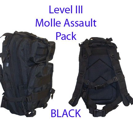 Buy Level III Lv3 Molle Assault Pack Backpack--BLACK at Indianapolis, Atlanta, Jersey City, North Las Vegas, Fort Lauderdale, Springfield, Hollywood, Coral Springs, Lafayette, Odessa and also available for delivery to Pennsylvania and all counties of the United States